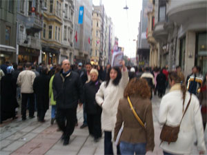 "Eğer onlardan değilsen: bir avuç toprak için can alanlardan, emperyalist işgallerle kan dökenlerden, sömürüp yoksul bırakanlardan değilsen, bu ses senin sesin!" diyerek yılgın yüreklere umut, suskun dillere çığlık olsun diye İstanbul'da İstiklal Caddesi'nde pazar (19.02.2006) günü bir sokak satışı yaptık.