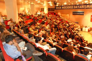 Petrol-İş Genel Mâli Sekreteri İbrahim Doğangül: "Petrol-İş Sendikası olarak meseleye nasıl bakıyoruz, özetleyeceğiz kısaca. Kriz patlak vermeye başladığından itibaren bir dizi çalışma yaptık. Birinci kısımda süreci algılamaya çalıştık. Sonra bu krizin bize, örgütümüze, işçi sınıfına yaratacağı sıkıntılar üzerine konuştuk. Hepinizin bildiği politikaları uyguladık. Sistemin krizini, ideolojik olarak sistemi sorgulamaya çalıştık. Aramızda yaptığımız görüşmelerde bu işi örgütlü bir şekilde aşacağız dedik. Bu sürece önderlik etmesi için TÜRK-İŞ'i zorluyoruz. Ama Petrol-İş sendikasının bağlı olduğu üst örgütle yapamıyoruz. Toplumsal muhalefetle, işsizlerle, sendikalarla bir şeyler yapmaya çalışıyoruz. Kapitalizmin acılarını yaşayan, başka bir dünya mümkün diyenlerle bir şeyler yapmaya çalışıyoruz. Bizler bu işin örgütleyicisi olmalıyız."