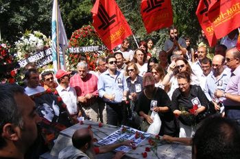 DİSK'in kurucu genel başkanı Kemal Türkler'i, katledilişinin 29. yıl dönümünde Topkapı Mezarlığı'ndaki mezarı başında andık