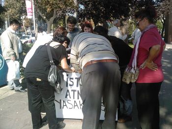Dün (10.10.2009 Cumartesi) Beşiktaş Meydanı'nda bir imza stantı açarak kampanyayı sürdüren komite bileşenleri emekçi halkımızın yoğun bir ilgisi ile karşılaştı. Yaklaşık bin imzanın toplandığı ve 12.00-17.00 arasında sürdürdükleri stant çalışmaları sırasında komitenin yayınladığı bildiriyi de dağıtan İşten Atmak Yasaklansın aktivistleri yaptıkları sohbetlerde işten atılmanın bir kader olmadığını, krizin faturasının krizi çıkaran patronlara kesilmesi gerektiğini vurguladılar. Beş saat boyunca zaman zaman sesli propagandalar da yapan aktivistler patronların krizi bahane ederek işten attıkları işçilerin yerine daha düşük ücretlerle yeni işçiler aldıklarını böylece kriz koşullarında bile daha kârlı hale geldiklerini anlattılar.
