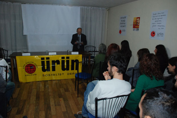 Panelde ilk sözü Ürün Sosyalist Dergi Ankara temsilciliği adına Cihan Kılıçarslan aldı.