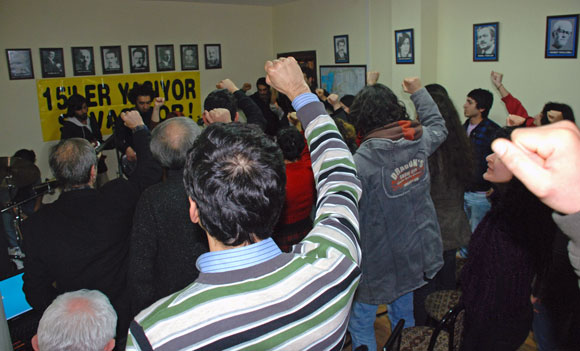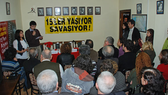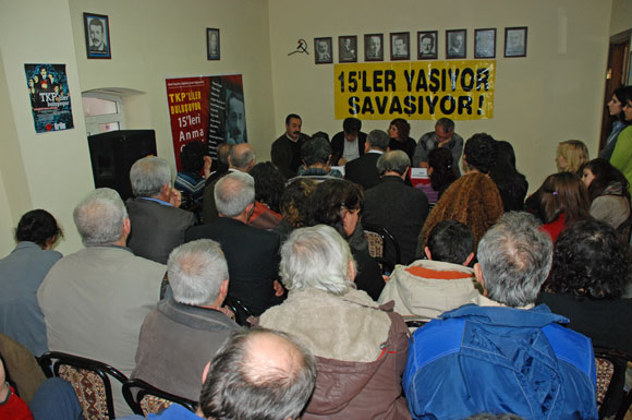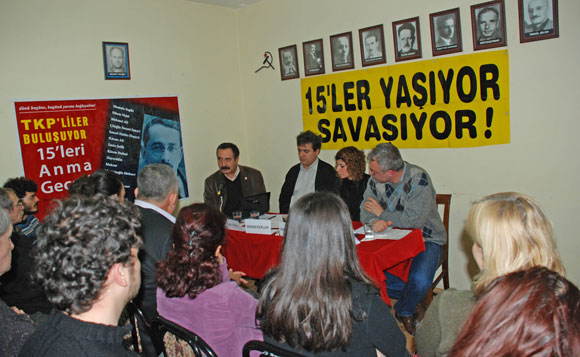 Ürün Sosyalist Dergi olarak düzenlediğimiz "TKP'liler Buluşuyor! 15'leri Anma Etkinliği", 30 Ocak 2011 Pazar günü saat 14:00'de İstanbul'da, Ürün Sosyalist Dergi'nin toplantı salonunda gerçekleştirildi. Etkinlik, başta Onbeşler ve TKP safında şehit düşenler olmak üzere tüm devrim ve sosyalizm şehitleri için saygı duruşunun gerçekleştirilmesi ve Enternasyonal marşının okunmasıyla başladı. Saygı duruşunun ardından etkinliğin sunumunu gerçekleştiren Ecem ve Bekir arkadaşlarımız geleneksel olarak İstanbul'da merkezi yapılan etkinliğin bu sene diğer yıllardan farklı olarak Ankara ve Mersin'de de yapılacağına değinerek, Mersin'deki etkinliğimizin aynı zamanda Mersin Ürün Temsilciliği'nin açılış etkinliği olduğunu ve bu sebeple ayrı bir öneme sahip olduğunu belirtti.
