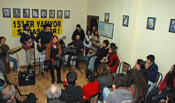 Okunan mesajların ardından adını İsmail Bilen'in kitabından alan ilerici gençliğin sesi Güneşli Dünya müzik grubu Türkçe, Kürtçe şarkılardan, marşlardan oluşan bir dinleti gerçekleştirdi. Güneşli Dünya'nın dinletisi, söyledikleri bir şarkının sözlerinde olduğu gibi kızıl bayrakların burçlara çekileceği hissini tüm dostlara taşımayı başardı.