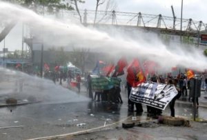 Öğrenciler ve eğitim emekçileri ise, kongre sürerken, toplantı ve gösteri yürüyüşü hakkını kullanarak durumu protesto etmek, sendikalarının ve derneklerinin "halk için eğitim, halk için bilim" temel hedefi doğrultusunda gençliğin, emeğin ve bilimin sesini duyurmak istiyor. AKP hükümeti, polise en temel demokratik haklarını kullanmak isteyen kitleye saldırma emrini veriyor. Gaz bombaları, cop ve plastik mermilerle kitle dağıtılıyor, gençler vahşice dövülüyor ve 13 genç gözaltına alınıyor.