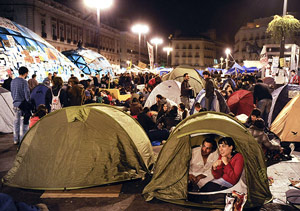 başkent Madrid'in Sol (Güneş) meydanında başlattığı kamp